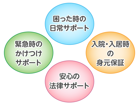 いきいきライフ協会®奈良は、医療機関への入院や施設への入所などの際に、身寄りがない、家族がいても身近に頼れる人がいない状況にある高齢者等の意思決定等を支援することを通して、「困った時の日常サポート」「入院・入居時の身元保証」「安心の法律サポート」「緊急時のかけつけサポート」といったシニアライフサポートをトータルで行っております。